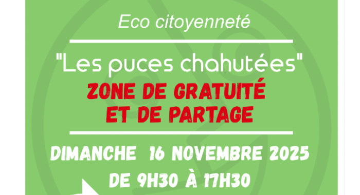 Zone de Gratuité Le dimanche 16 novembre 20259:30 - 17:30 Zone de Gratuité et Bourse aux plantes « Les Puces chahutées » Dimanche 16 novembre 2025 de 9h30 à 17h30 Lire la suite » ActualitésFamillesTout public