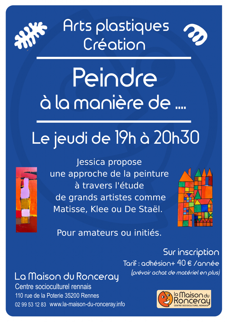 Jessica propose aux amateurs et amatrices comme aux initié.es une approche de la peinture à travers l’étude de grands artistes (Matisse, De Staël…).