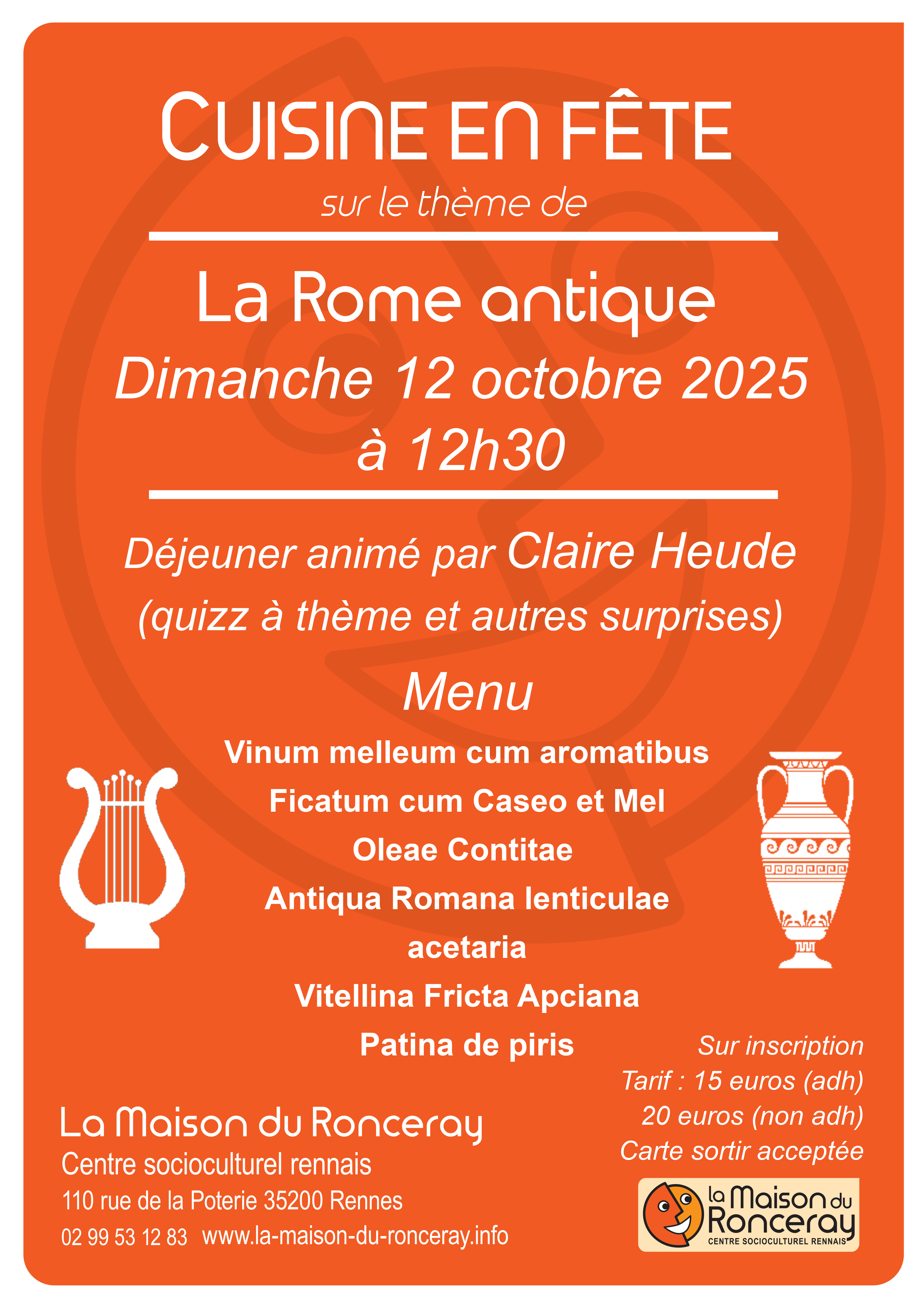 Nous avons le plaisir de vous inviter à participer à l’édition 2025 qui aura lieu le samedi 12 octobre 2025 à la Maison du Ronceray à 12h30